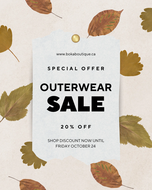 Shop all outerwear at 20% off starting now until Friday October 24th at midnight!