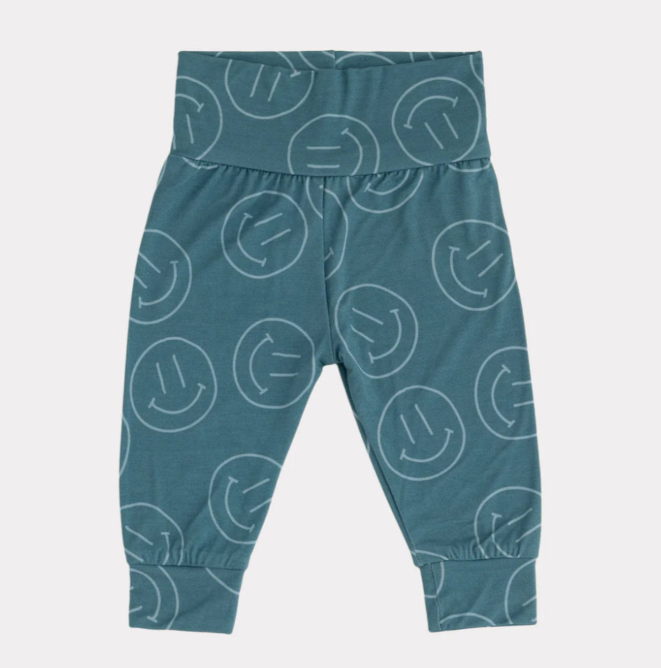 Foldover Bamboo Pant - Teal Smiles