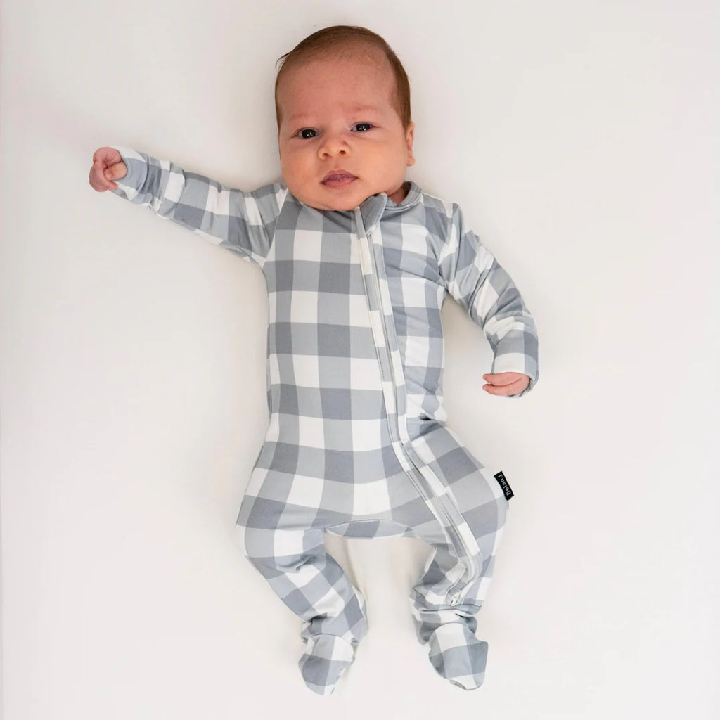 Footed sleeper made in buttery soft bamboo rayon for the perfect night sleep. Bamboo is very breathable and moisture wicking which makes it the ideal fabric for infant sleepwear. 2-way zipper closure makes for easy diaper changes while fold over cuffs* and chin guard keep baby safe from scratches and pinches. Sizes 6-12M & 12-18M have silicone grippers on soles to prevent slipping.