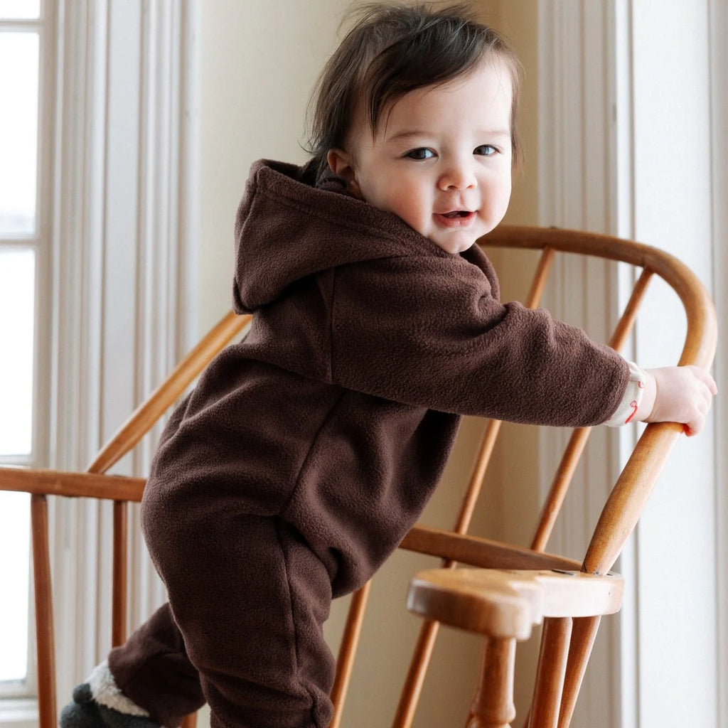 A cozy, lightweight layer made for chilly days. Crafted from ultra-soft ironed polar fleece, this one-piece keeps little ones warm from head to toe without feeling bulky - perfect for stroller walks, car rides, and everyday outings.
