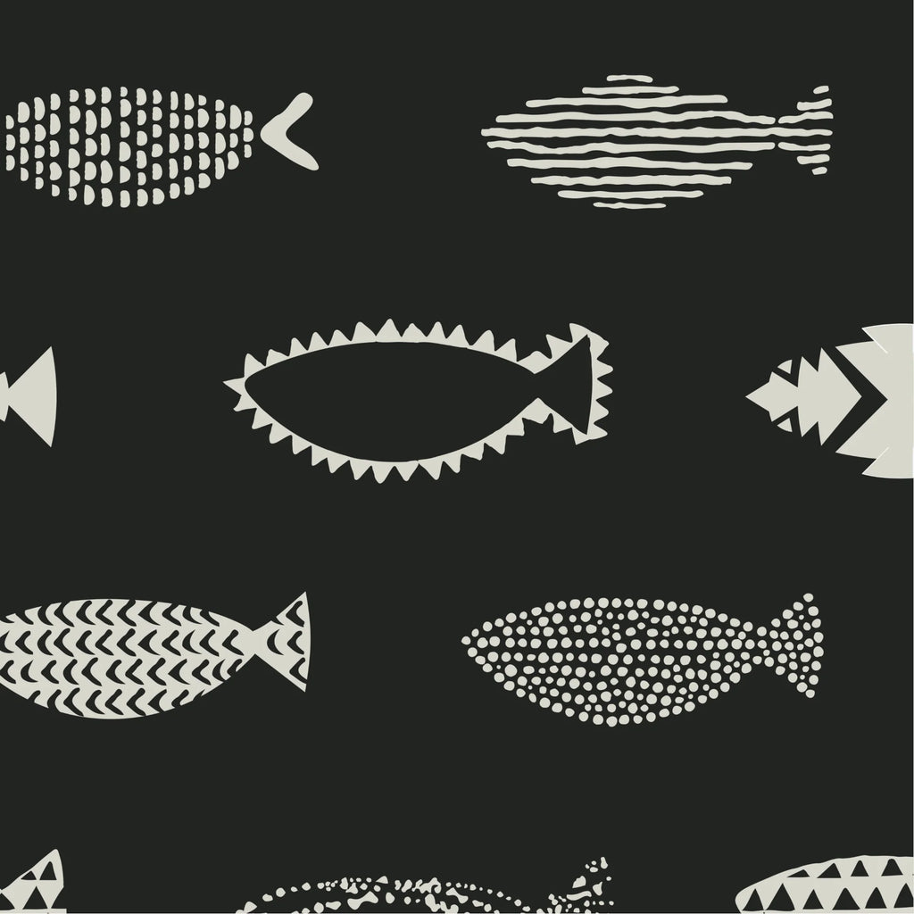 The "Axel" print features minimalist, hand-sketched fish on a soft matte black background—bold yet subtle, a print you'll both love.