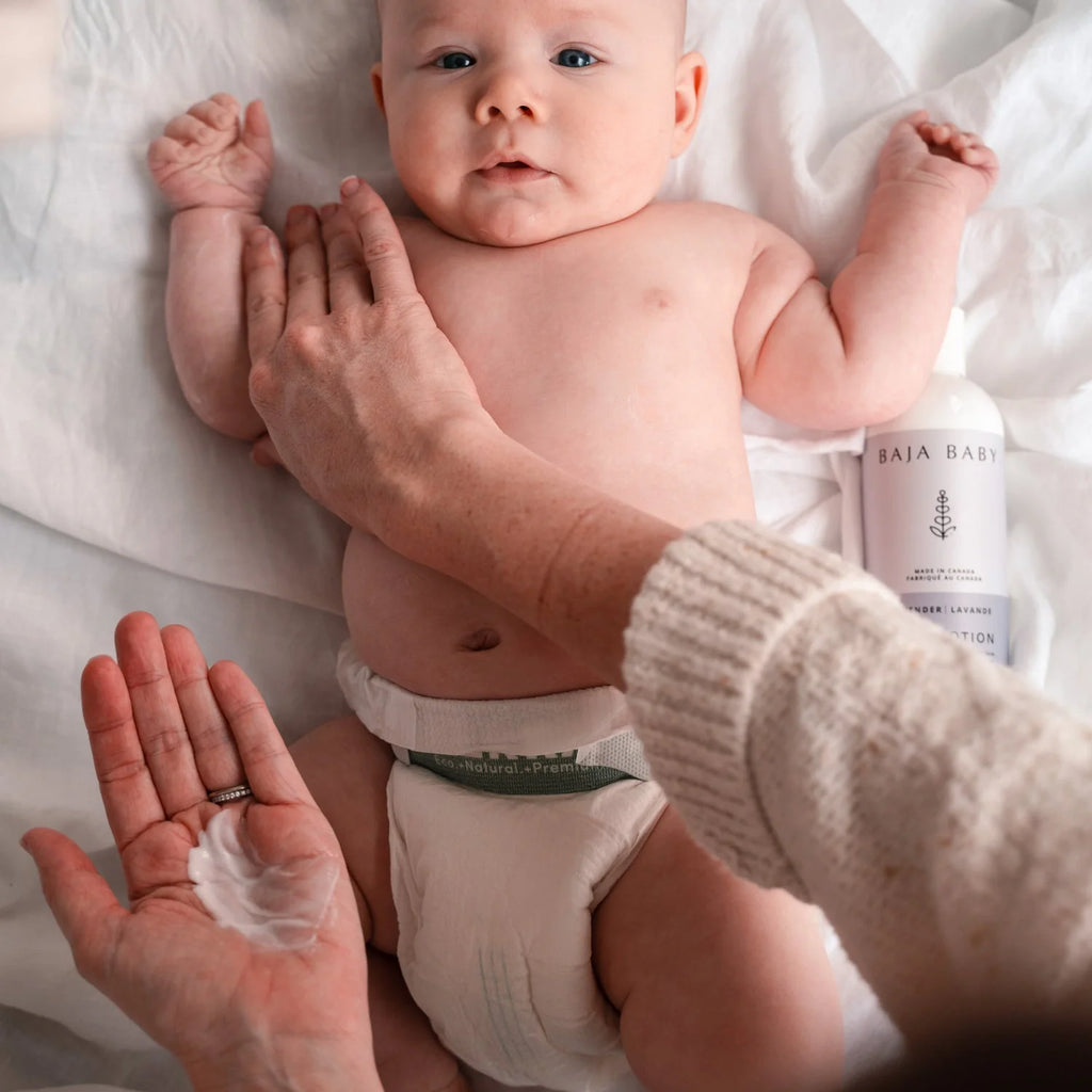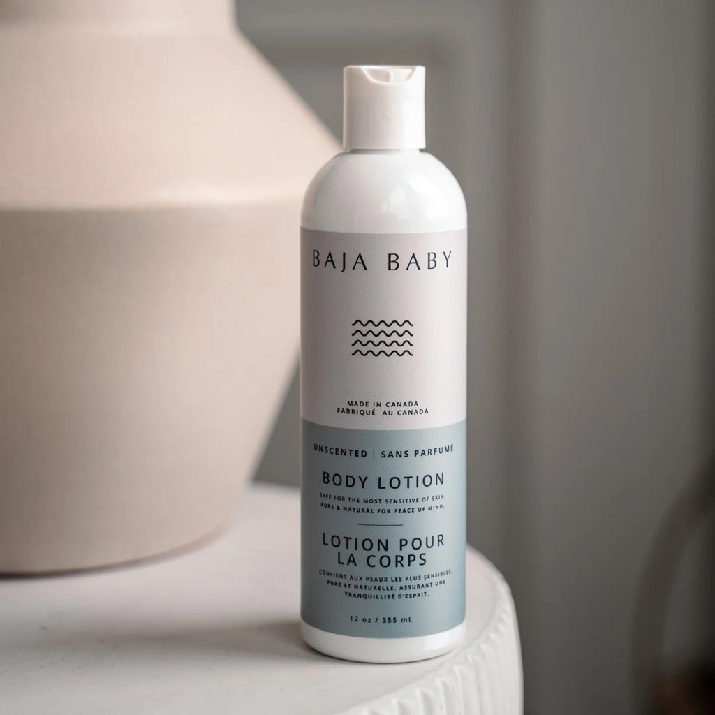 This is a lightweight, non-greasy super-safe baby lotion that's the perfect choice for a newborn whose skin is being exposed to new things for the first time. But, you’ll love it so much the whole family will be using it!*please note that ingredients list is for Baja Baby Unscented Body Lotion.